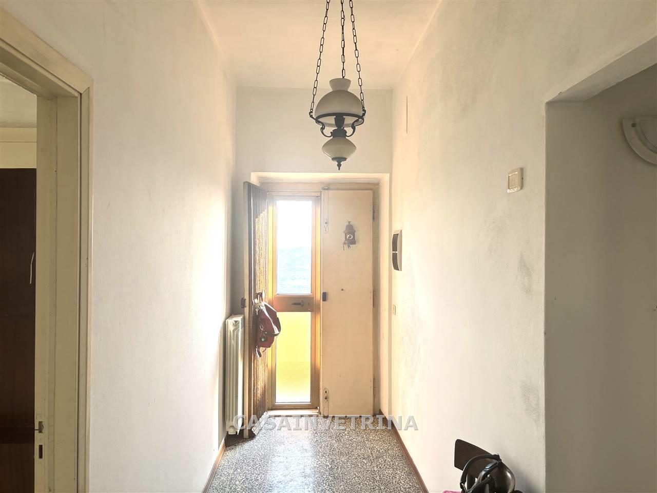 proponiamo in vendita interessante appartamento di ampia metratura con ingresso indipendente da balcone condominiale parzialmente da ristrutturare 105 mq circa in piccola palazzina con stupenda vista panoramica fino al mare piano secondo ed ultimo senza ascensore l’unità immobiliare è così composta ingresso sala con terrazzo cucina abitabile disimpegno notte con grande camera matrimoniale cameretta doppia bagno completano la proprietà un grandissimo garage con annessa cantina al piano terra per un totale di circa 40 mq e un piccolo terreno in uso sul retro del fabbricato. Libero pronta consegna chiavi in agenzia RIF.CVE193 classe G EP gl 167,07 (rif. 18/3030.CVE220)