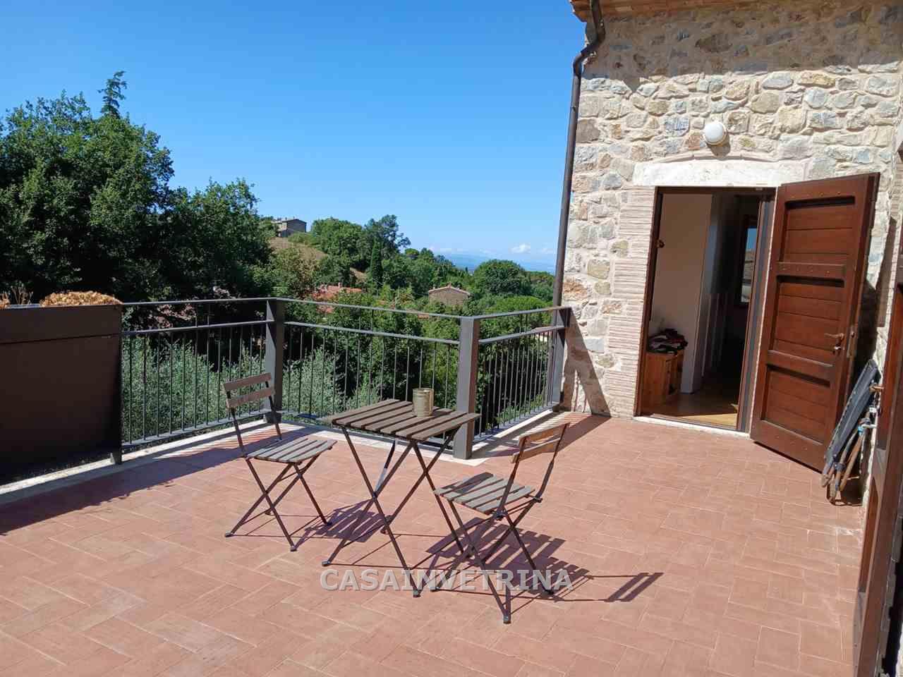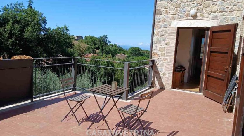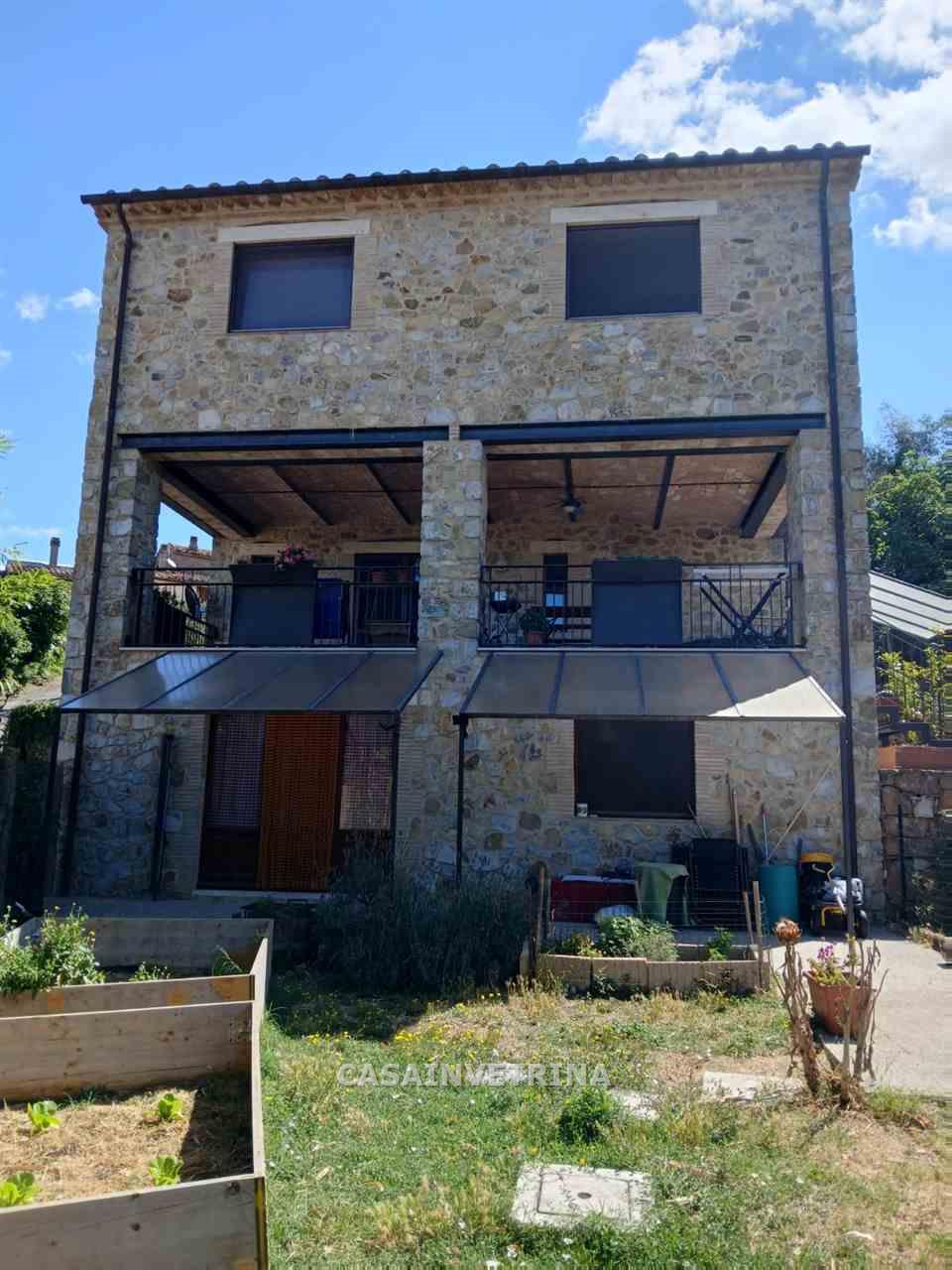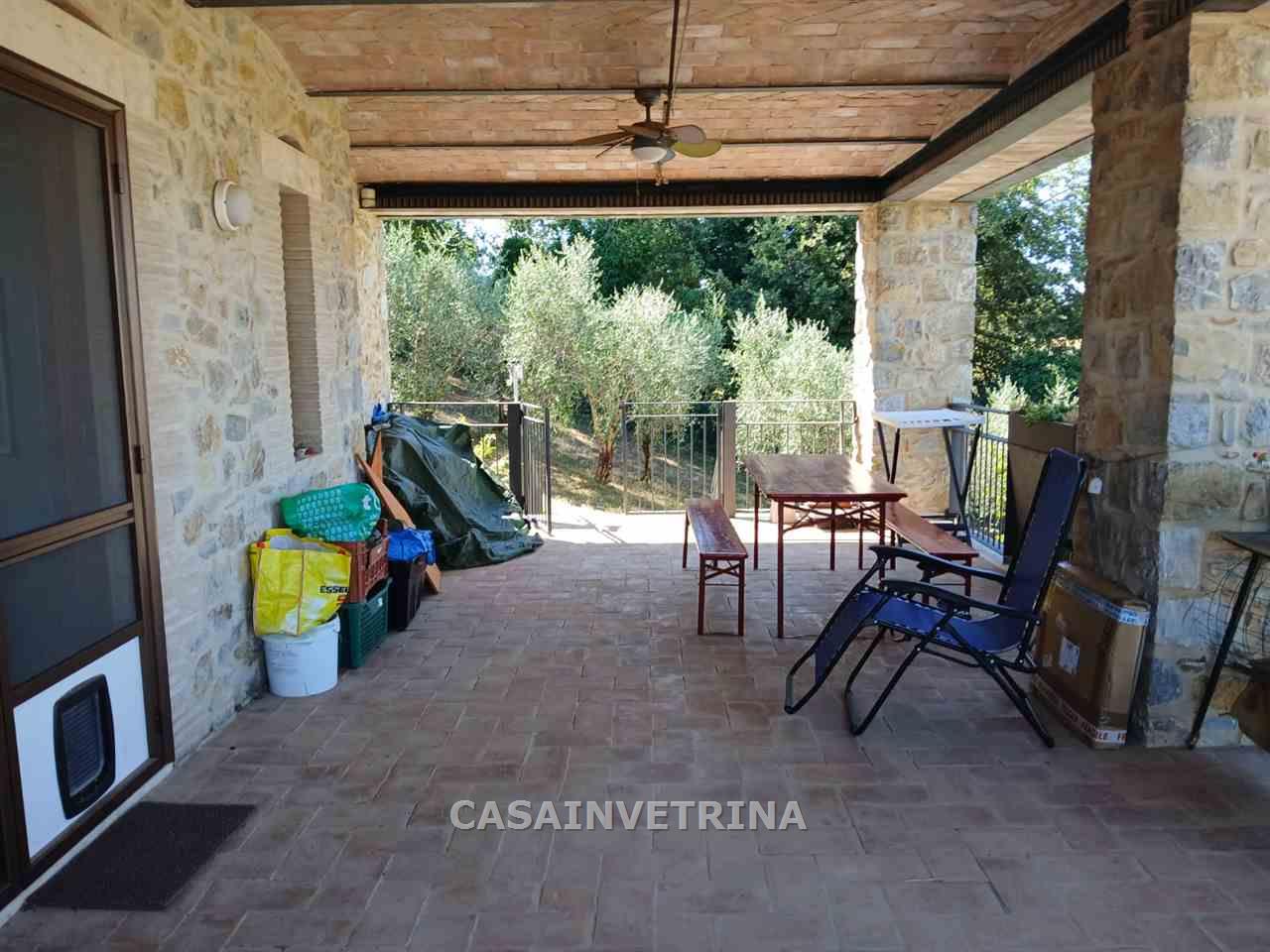 Proponiamo in vendita fabbricato monofamiliare completamente ristrutturato con muri esterni a pietra faccia vista. composto al, piano terra da ampio salone a vista sulla cucina abitabile,bagno con antibagno ampio portico coperto e panoramico. da scala interna con arrivo sul soppalco a vista con uscita in ampio terrazzo panoramico , due camere matrimoniali ognuna con bagno privato. al piano seminterrato collegato anche da scala interna ampia taverna divisa in tre locali, bagno, lavanderia il tutto comunicante con il garage. circonda il fabbricato terreno esclusivo di circa 1.000 mq. con varie piante da frutto e n°20 piante di ulivi. il fabbricato si trova in posizione dominante sulla frazione di poggio murella con vista panoramica, molto luminoso, ottimamente rifinito. centrale termica con impianto fotovoltaico RIF CVE217 Classe D Ep Gl 64,32. (rif. 18/3024.CVE217)