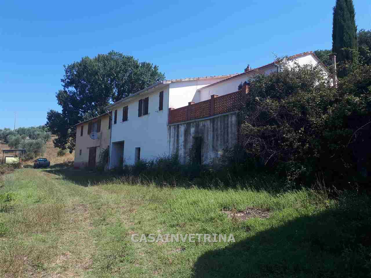 AMPIO FABBRICATO DISPOSTO SU DUE LIVELLI PER UN TOTALE DI MQ.450 DI CUI MQ. 150 DIVISO IN TRE UNITA’ ABITATIVE I RESTANTI IN MAGAZZINI STALLE E GARAGE. COMPLETA LA PROPRIETA’ TERRENO SEMINATIVO DI HA. 60,0 CIRCA DOLCE COLLINA CON DI CIRCA 1000,0 PIANTE DI ULIVI. GLI APPARTAMENTI SONO PARZIALMENTE DA RISTRUTTURARE MENTRE I FONDI SONO DA RECUPERARE ANCHE COME INDIRIZZO RICETTIVO. LA PROPRIETA’ E’ SERVITA DA UTENZE LUCE E ACQUA, E’ PRESENTE SORGENTE NATURALE. BUONA POSIZIONE PANAORAMICA. (rif. 18/3038.)
