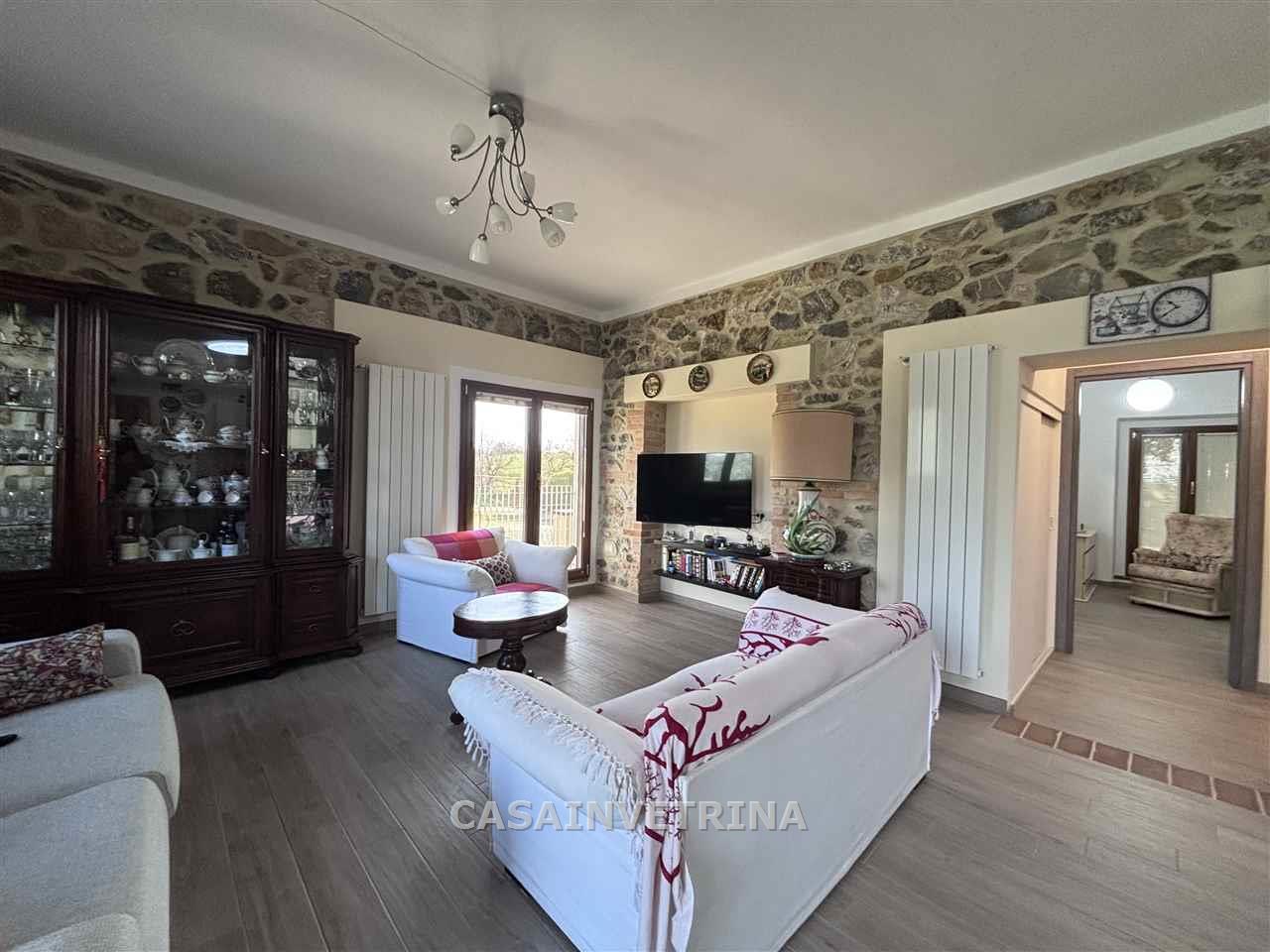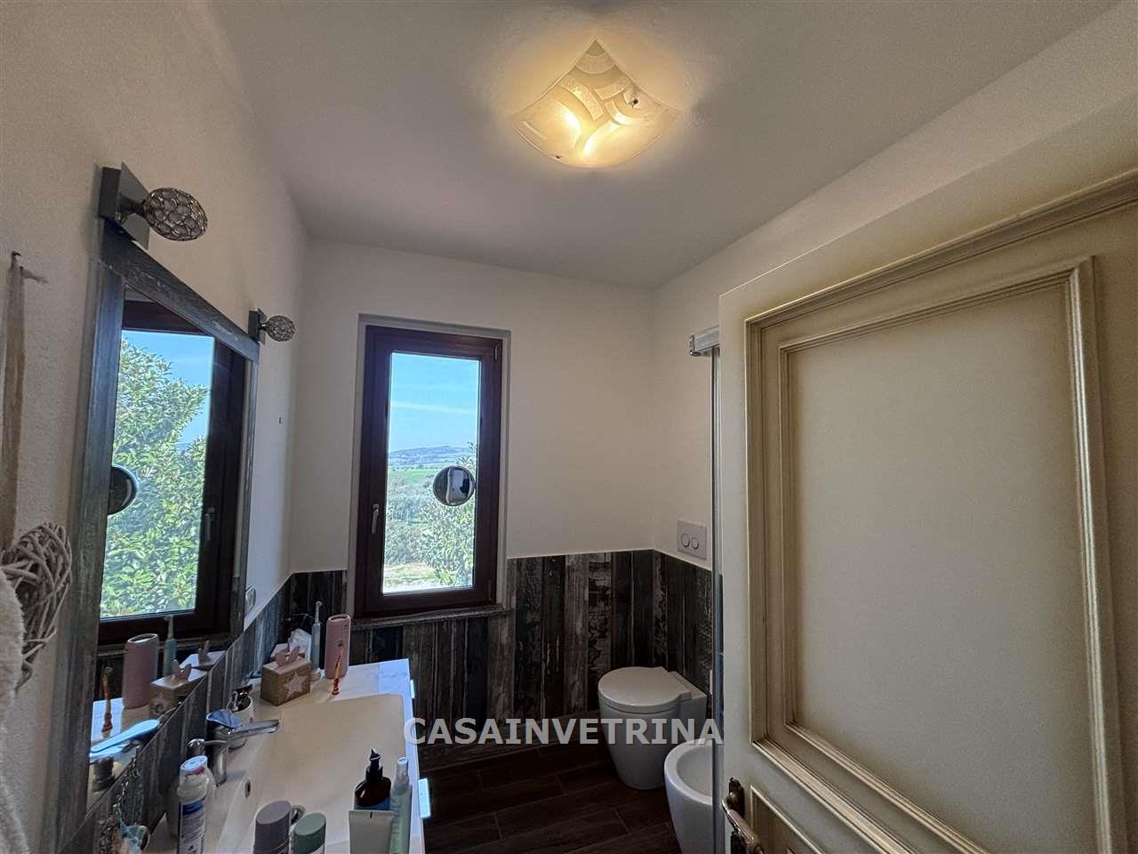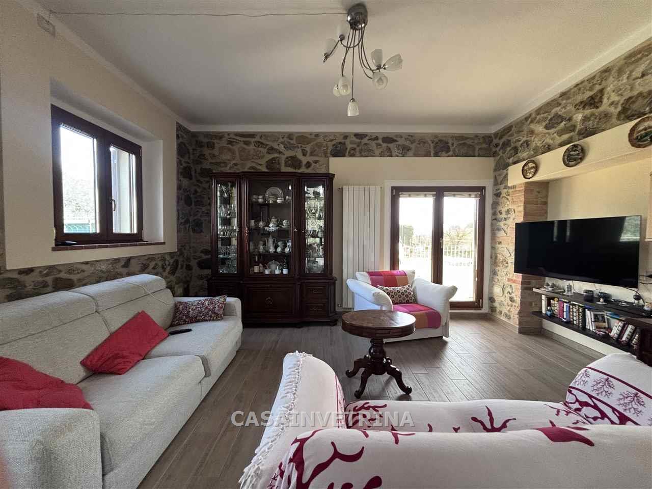 a soli 5 km. da Grosseto in posizione panoramica fabbricato indipendente diviso in due unità’ abitative di cui la prima composta al piano terra da ampia veranda coperta, soggiorno con zona cottura caminetto, bagno, al piano primo tramite scala interna camera matrimoniale, camera singola, bagno (superficie totale mq. 90). l’altra unità’ con ingresso indipendente ma facilmente unibile con la prima ampio soggiorno con zona cottura, disimpegno notte, camera matrimoniale, bagno padronale. gli appartamenti sono circondati da giardino esclusivo ben curato . completa la proprietà’ grande garage con bagno e ripostiglio, tre posti auto con copertura con pannelli fotovoltaici, annesso. terreno di c.a. ha.1,5 con ulivi piante da frutto. pozzo per irrigazione, ottime rifiniture , molto luminoso LIBERO A BREVE (rif. 18/3102.CVR146)