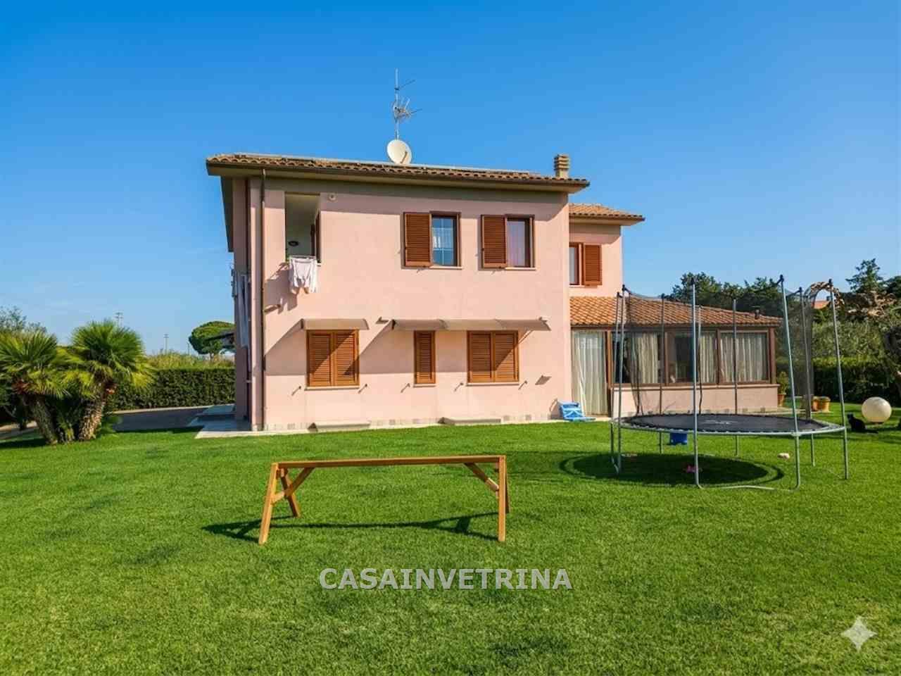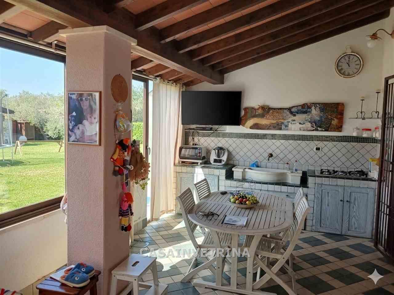 La nostra agenzia propone in vendita splendida villa monofamiliare in ottime condizioni sviluppata su 3 livelli , composta al piano terra da porticato di ingresso, ampia veranda con vetrage con vista sul giardino, soggiorno, cucina, disimpegno notte, camera matrimoniale con bagno personale e stanza armadi, camera doppia , bagno di servizio. dal soggiorno con importante scala interna si accede alla taverna ottimamente rifinita con ampia zona living con parete cottura , caratteristico camino, bagno, comunicante con altri tre locali oltre al bagno. il piano seminterrato e’ totalmente circondato da vano scannafosso.al piano primo con accesso dal soggiorno oltre che da accesso indipendente troviamo appartamento composto da soggiorno, cucina con terrazza, bagno, disimpegno notte, camera matrimoniale, due camere singole e bagno, al piano terra il fabbricato e’ circondato su tutti i lati da un grande giardino esclusivo di circa 2000 mq ottimamente attrezzato con zona barbecue, impianto di irrigazione, ed impianto di illuminazione, zona parcheggio con car-port per tre posti auto .l’immobile al suo interno e’ ottimamente rifinito con materiali di pregio , sostanzialmente diviso in due appartamenti indipendenti fra loro termoautonomo e climatizzato e dotato di impianto fotovoltaico libera a breve RIF CV654 classe A+ (rif. 18/3117.CV654)